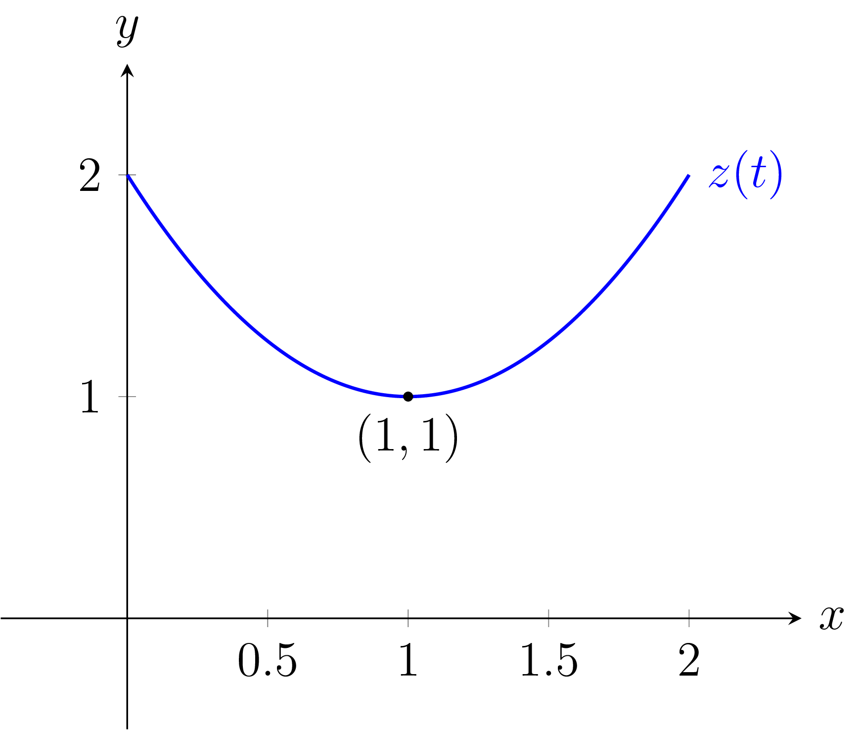 Range z=C={(x,y)∣y=(x−1)2+1,x∈[0,2]}. 即圖形為拋物線,圖示如下: