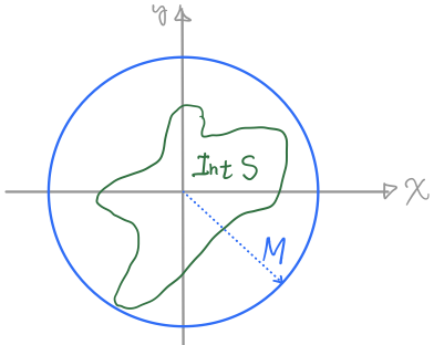 圖1.5-12: 有界集合必落在某個圓盤 DM(0) 之內。