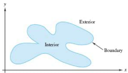 D 是一個區域 (region) 的充要條件是集合 D 是一個域,且 D 可能包含有一部份或全部的邊界點,以及 D 可能不包含任何邊界點。又封閉區域 (closed region) 係指一個域和它的邊界所形成的集合 D∪∂D。